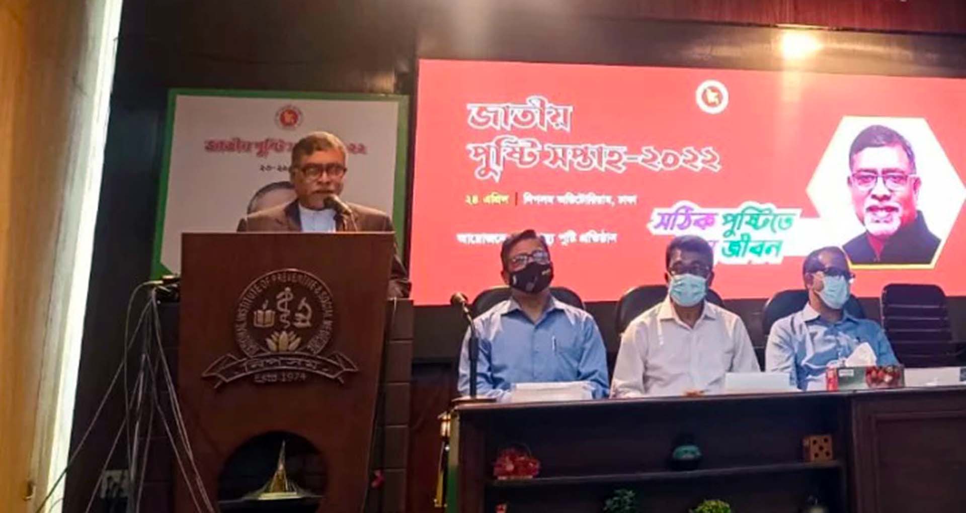 রাজধানীর মহাখালীতে জনস্বাস্থ্য পুষ্টি প্রতিষ্ঠানে (নিপসম) জাতীয় পুষ্টি সপ্তাহ উদ্বোধনী অনুষ্ঠানে আজ রোববার তিনি এসব কথা বলেন। এবারের প্রতিপাদ্য ‘সঠিক পুষ্টিতে সুস্থ জীবন’। ২৩ এপ্রিল থেকে শুরু হওয়া এই কার্যক্রম চলবে ২৯ এপ্রিল পর্যন্ত।